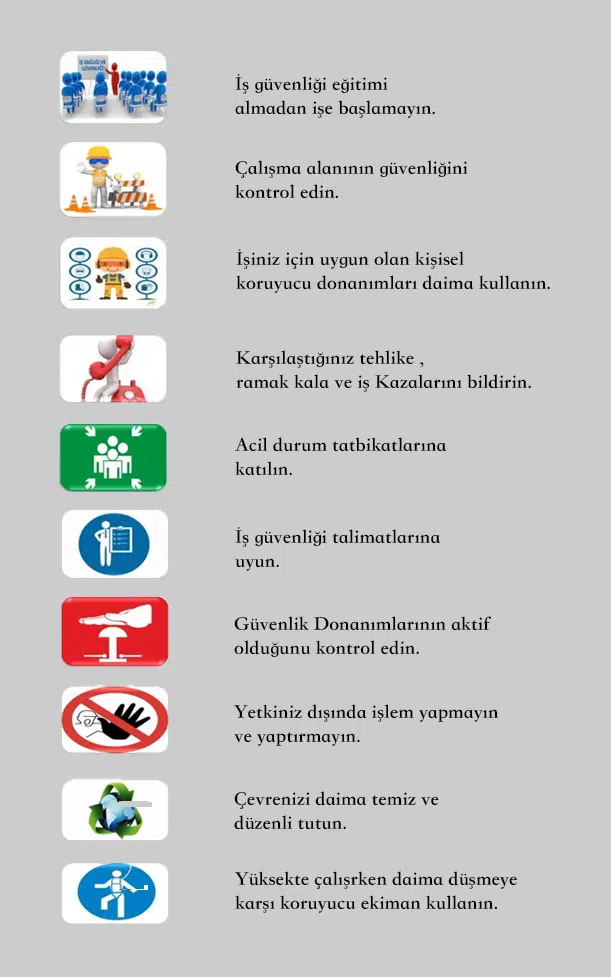Tüm çalışanlarımız düzenli iş sağlığı ve güvenliği eğitimlerinden geçer.